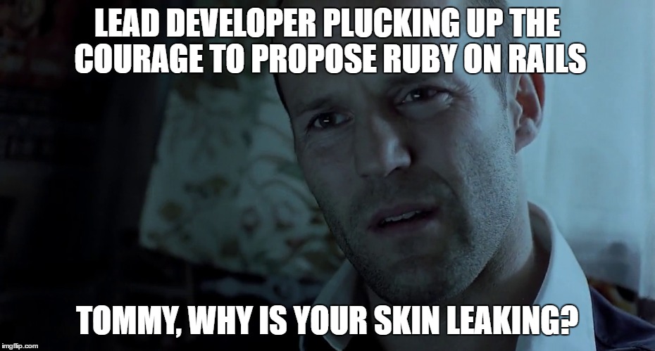 Lead developer plucking up the courage to propose Ruby on Rails Tommy, why is your skin leaking?