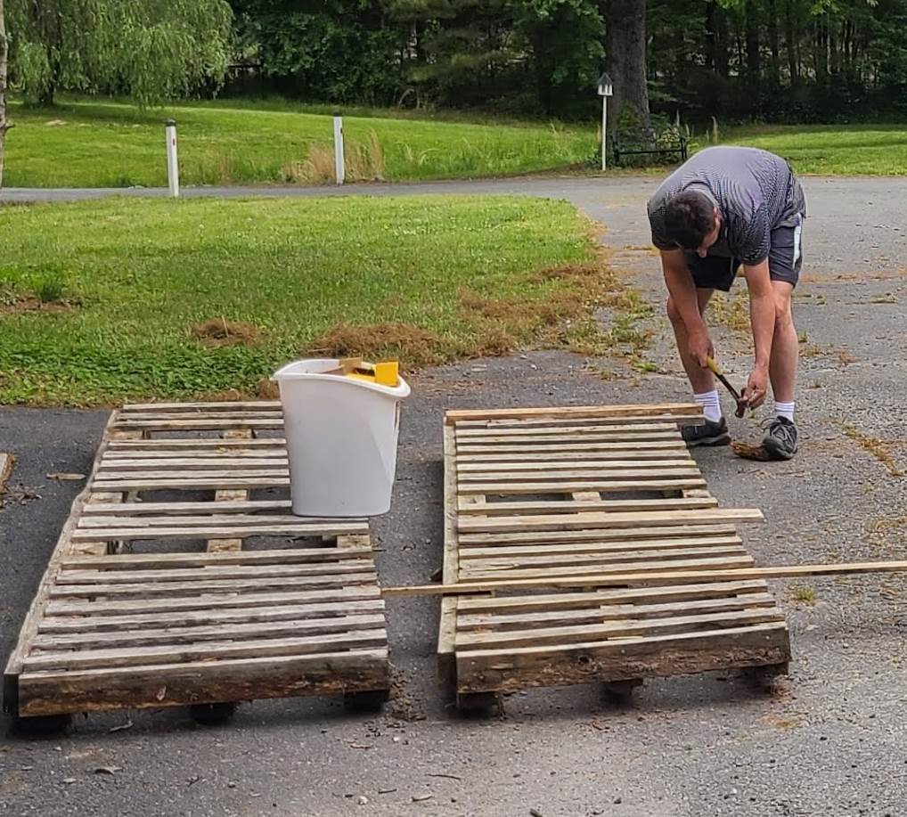 The quick fix was to use what we had at hand. As part of my frugal nature, I collect old pallets off of Craigslist, to use as burning material for our Solo fire pit. It just so happened I had a couple of 12ft pallets in stock ready for cutting up and burning.