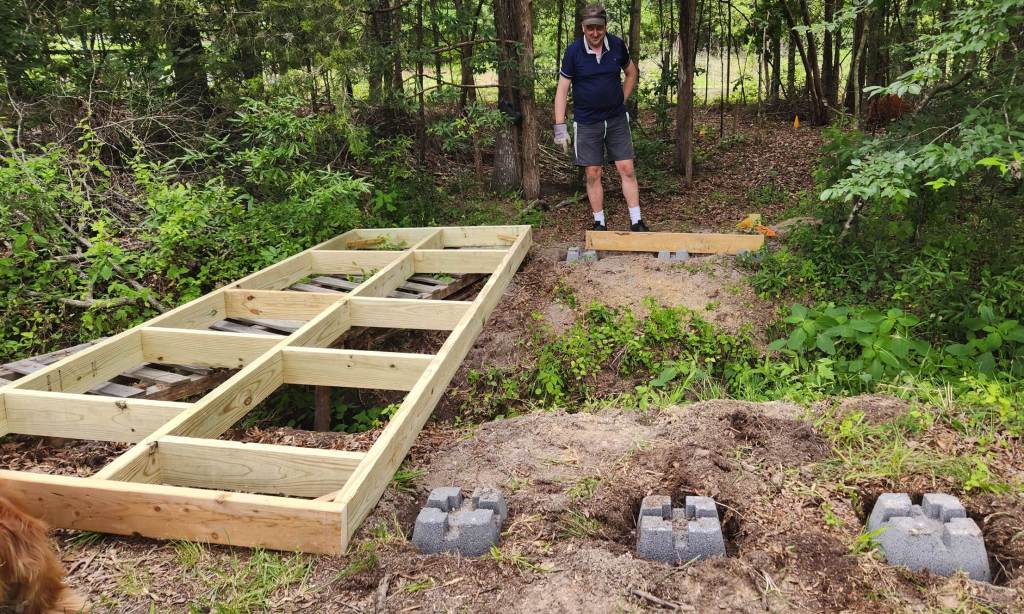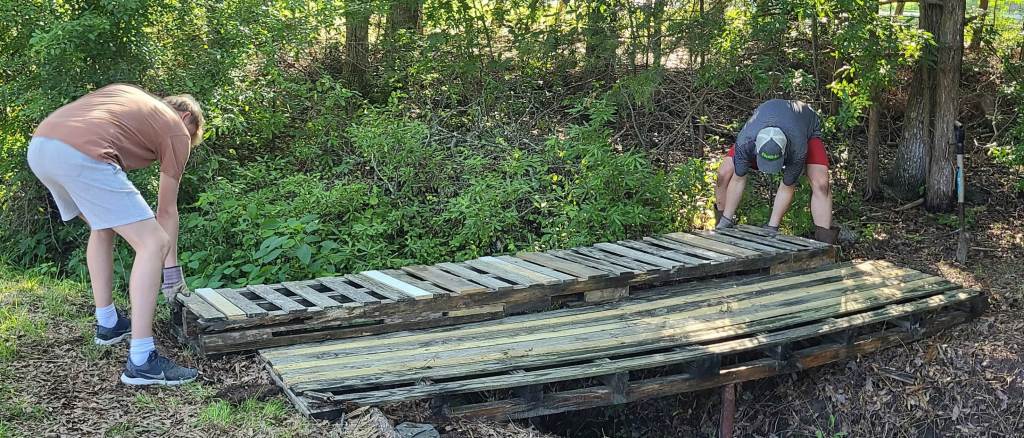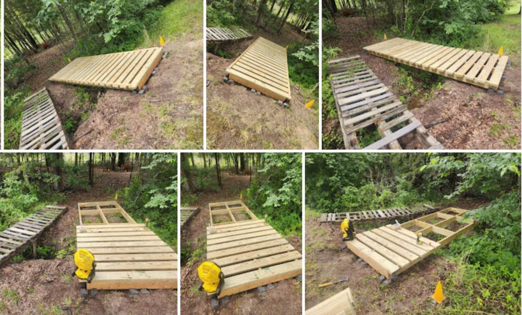 Learning from Bridge 1.0, it was known that the wood having direct contact with the ground, would accelerate the rot. Using this information, we placed the new bridge on concrete blocks. Just because 1.0 didn’t last long, doesn’t mean there wasn’t learnings to be gleamed.
