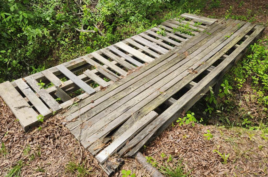 The first signs that things weren’t well, was when the first trip of the season, a number of the slats crumpled under the weight of the ATV. The bridge was in a sorry state of affairs.